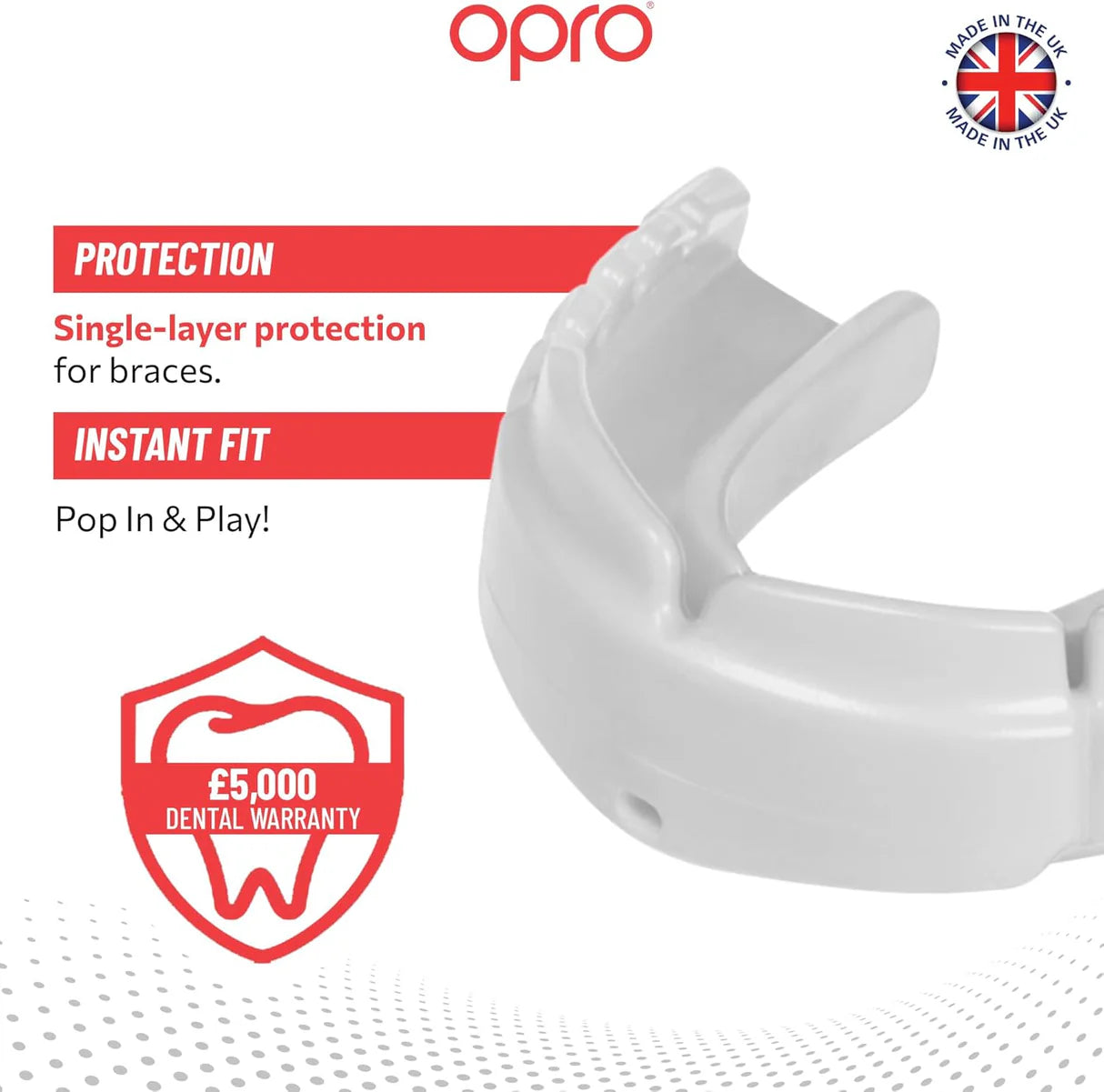 Opro's Snap-Fit styles for those with fixed braces need no moulding before use, making them perfect as an entry level mouthguard for braces. If you need a spare, why not add one of our classic Snap-Fit designs to your collection? You'll never miss a game because of a misplaced gum shield again!