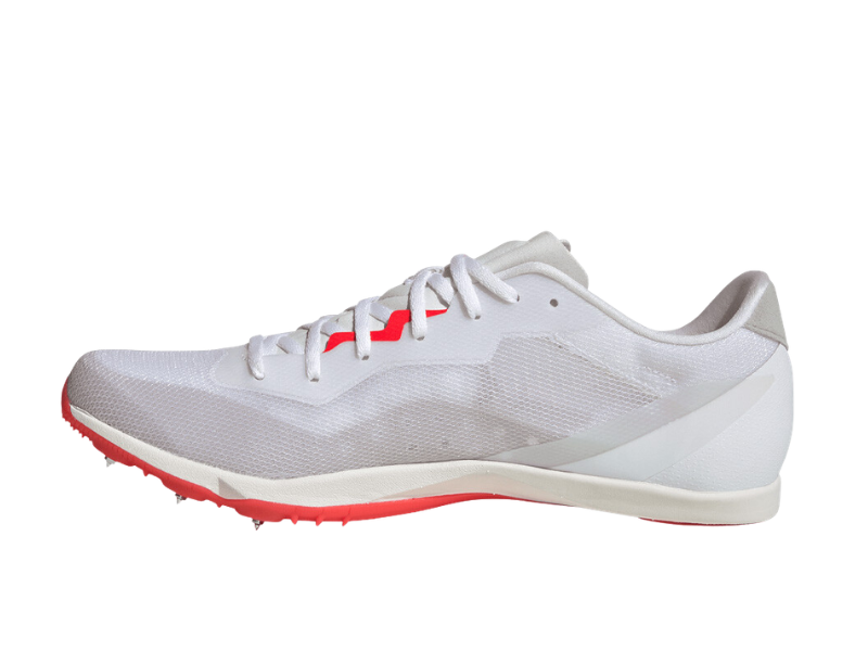 With a synthetic upper, these shoes are exceptionally lightweight and breathable. The upper material promotes air circulation, allowing heat and humidity to escape, which helps keep your feet cool and focused on your run. adidas has incorporated overlays around the toes and along the sides of the spikes, enhancing both durability and structure. These overlays also protect your toes from bumps and scrapes, while the synthetic lining provides additional comfort. Completing the upper is a traditional lacing which locks the midfoot for a secure fit and prevents in-shoe slippage.