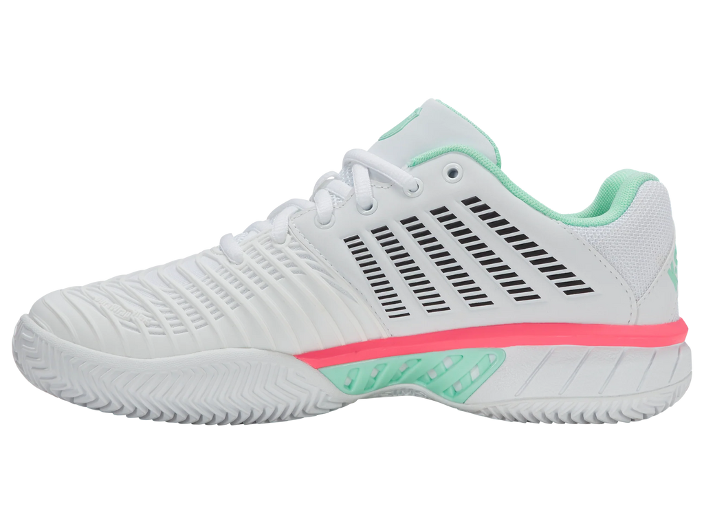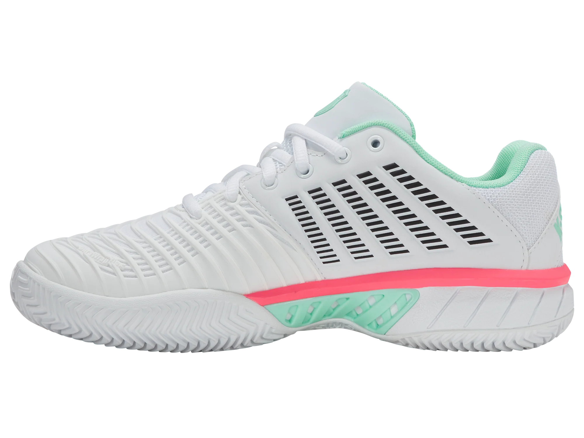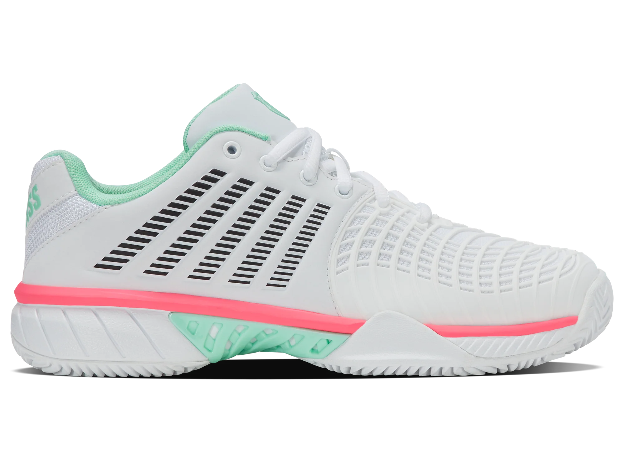 K-Swiss Express Light 3 Clay Ladies Tennis Shoe (WHITE/NEON MINT/NEON PASTEL PINK)